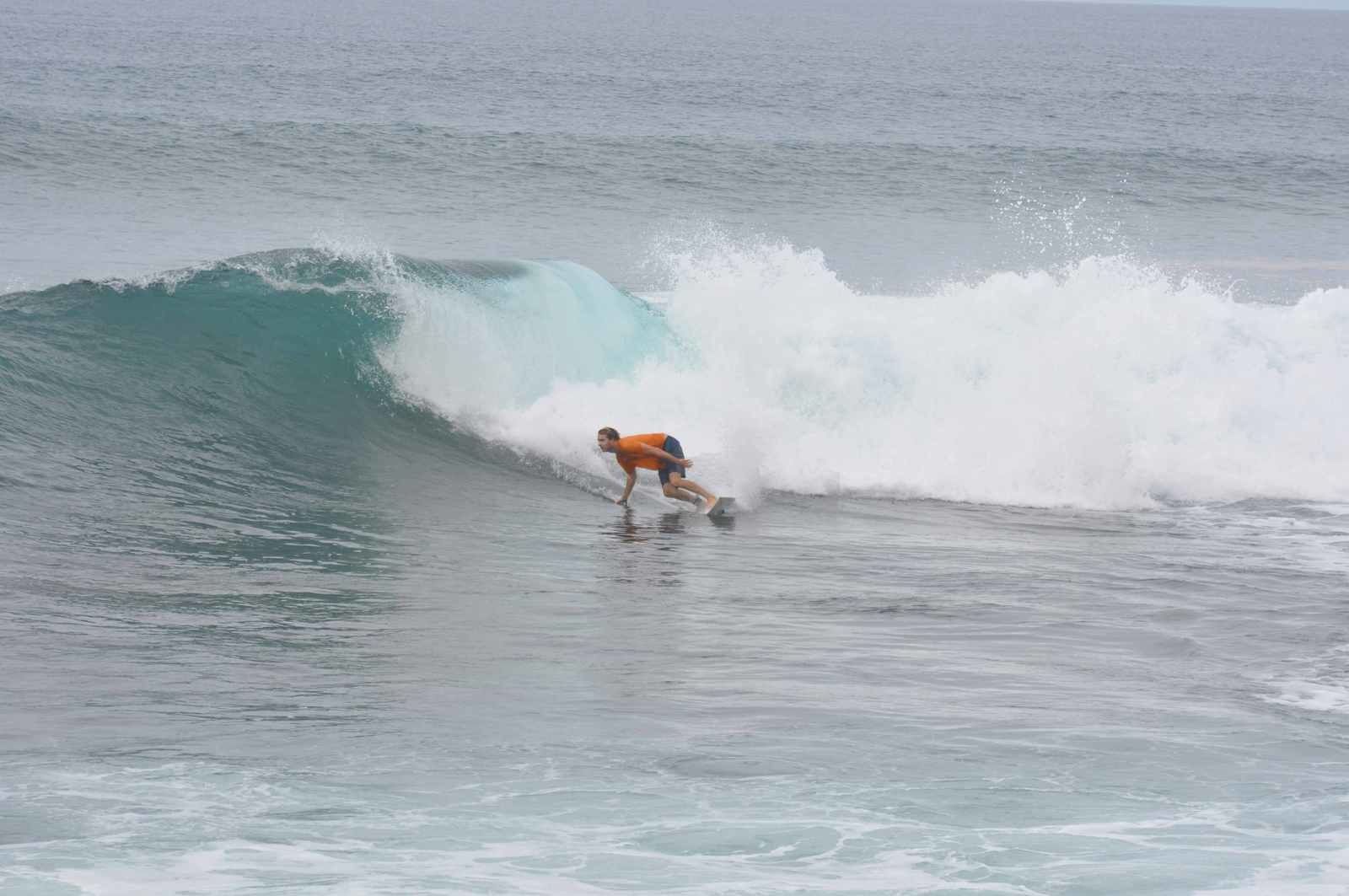 Effervescence matinale à bord : sous le soleil , le surfeur du bord se met à l’eau pour se laisser porter par la houle cap-verdienne.